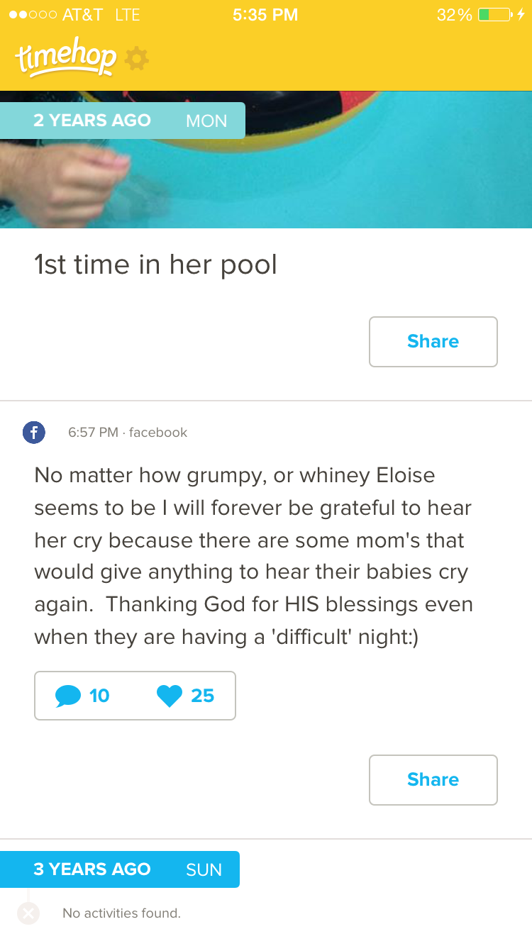 There is this thing that tells you what you were doing this exact day last year, 2 years ago, 5 years ago, etc. It’s called Timehop. So I looked up mine today and this is what came up 2 years ago today….